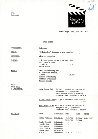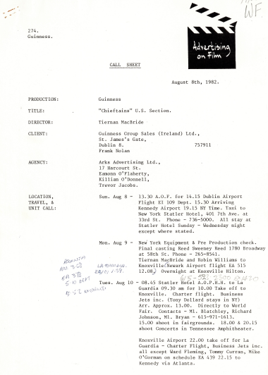 This cinematic advert, directed by Tiernan MacBride, shows The Chieftains playing in New York and enjoying a pint. Tiernan MacBride directed the complementary Elkie advert in The Guinness Adverts Project, and the short film Christmas Morning.