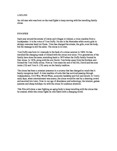 Directors Jill Beardsworth and Keith Walsh lift the curtains to show that behind the bright lights and laughs of the circus lies drama, family feuds and hardship. Despite being knocked down by life’s challenges, Tom Duffy has bounced back to survive discrimination, bare fist fights and colon cancer and is determined to see his circus through to the very end. To Tom, this is not a sacrifice – it is an honour born of his membership of a circus dynasty that has spanned over two hundred years and eight generations.