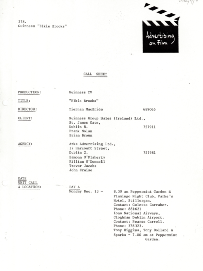 Singer Elkie Brooks performs in Dublin during an Irish tour. She spends time around the city (The Shelbourne Hotel features) and drinks Guinness with her bandmates. Tiernan MacBride directed the complementary Chieftains advert in The Guinness Adverts Project, and the short film Christmas Morning.