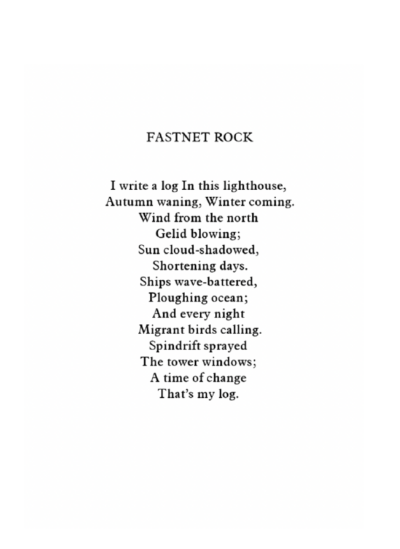 Fathom is a short documentary about the Fastnet Lighthouse, located on the most southerly point of Ireland off the coast of Cork. Weaving together a series of archival films, this documentary captures the majesty of the Fastnet Lighthouse, the intricacy of its construction and operation and the mighty power of the surrounding sea. Marrying vivid imagery with a spare and dialogue-free soundscape, this essayistic film considers solitude, meditation and the process of thinking, in this most isolated spot.